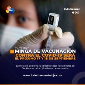 Nueva minga de vacunación contra el covid-19 será el 17 y 18 de septiembre Más de siete millones de personas...