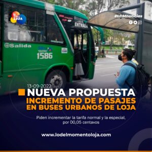 #Loja| La propuesta es incrementar el pasaje de 30 a 40 centavos la tarifa normal, y de 15 a 20...