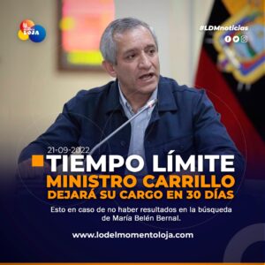 #Ecuador | El ministro del interior Patricio Carrillo, dejará su cargo si en máximo 30 días no hay resultados en...