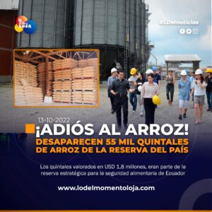 Los quintales de arroz eran parte de la reserva estratégica para la seguridad alimentaria de Ecuador y están valorados en...