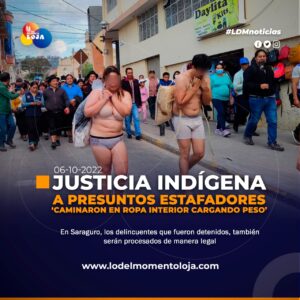#Loja | Presuntos estafadores fueron obligados a caminar en ropa interior cargando peso en Saraguro, la denominada justicia indígena se...