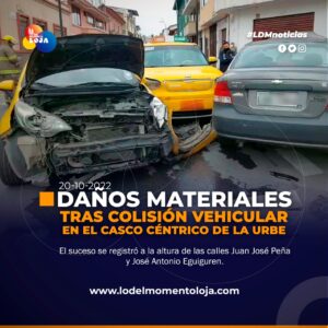 #Loja | Durante horas de la mañana se registró un accidente de tránsito que involucra a tres vehículos (dos taxis...