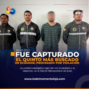 #Ecuador | La Policía Nacional informó de la captura del quinto más buscado de Ecuador este jueves, 20 de octubre...