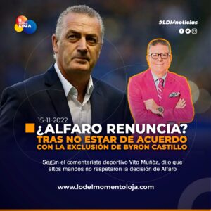 #Loja | Según Vito Muñoz, comentarista deportivo, Gustavo Alfaro, habría renunciado al no estar de acuerdo con la exclusión de...