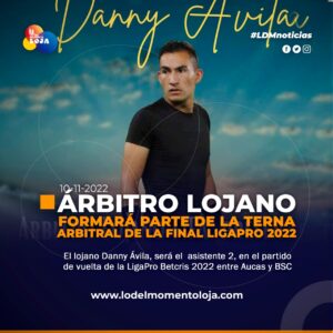 #Loja | El lojano Danny Ávila formará parte de la terna arbitral para el partido de vuelta de la LigaPro...