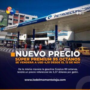 Petroecuador informó a través de un comunicado que desde el 12 de noviembre de 2022 la gasolina Súper Premium 95...