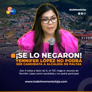 #Loja | Yennifer López Córdova, no puede ser candidata a la Alcaldía de Paltas. El TCE, con 4 votos a...