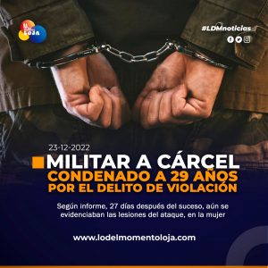 Vinicio R., militar en servicio activo, fue condenado este jueves 22 de diciembre por un Tribunal Penal a 29 años...