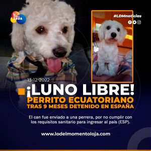 Luno, el perrito ecuatoriano que fue detenido en un aeropuerto de Madrid, finalmente salió en libertad tras permanecer nueve meses...