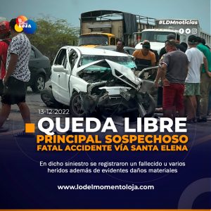 #Loja | Geovanny R. provocó un accidente de tránsito en la vía a Santa Elena, que generó la muerte de...