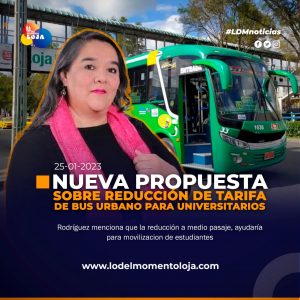 #Loja | La tarifa actual para los jóvenes universitarios es de 0,30 cts, la propuesta de Rodríguez es disminuirla a...