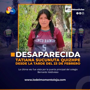 😱🕵️👮🏻 ¡Menor desaparecida! Tatiana Valentina Sucunuta Quizhpe, de 13 años, está reportada cómo desaparecida desde las 15:00 del jueves 23...