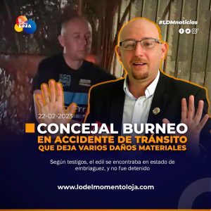 #Loja | Pablo Burneo Ramón, Concejal de Loja, chocó frontalmente a un vehículo, la noche del lunes 20 de febrero,...