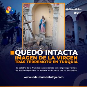Una imagen de la Virgen María quedó intacta tras el desplome de una catedral católica en Turquía, seriamente afectada por...