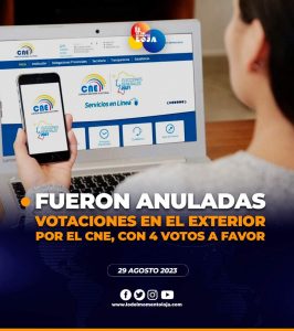 🇪🇨🕵️✅ ¡Votos anulados! El pleno del CNE, derogó la modalidad de voto telemático en el exterior, con cuatro votos a...