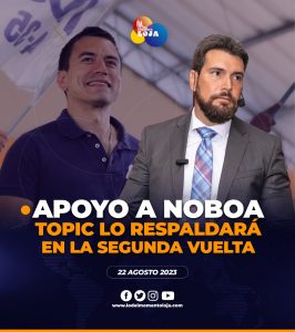 😉☑️🗳️¡Le voy a Noboa! El excandidato presidencial Jan Topic, expresó públicamente que dará su voto por Daniel Noboa para la...
