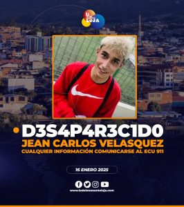 ¡Máxima difusión! El joven lojano, Jean Carlos Velásquez Pintado de 22 años de edad, está reportado como d3s4p4r3c1d0 desde el...