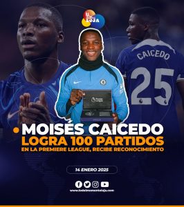 ⚽🏅👏🏻 ¡Placa conmemorativa! El jugador ecuatoriano Moisés Caicedo, recibió un reconocimiento especial por alcanzar los 100 partidos en la Premier...