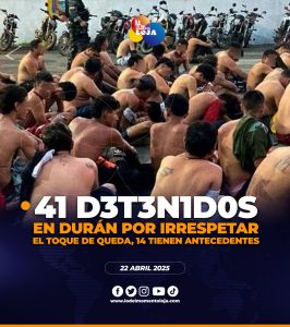 😱🚨🚔¡Por no cumplir la ley! Tras los operativos realizados por miembros de Policía Nacional en Durán, un total de 41...
