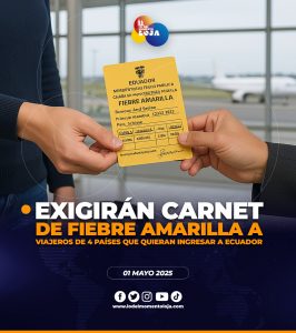 🚨🛫📄¡Será obligatorio! Tras un brote de casos de fiebre amarilla en Colombia, el Ministerio de Turismo de Ecuador informó que,...