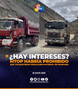 MTOP HABRÍA PROHIBIDO QUE VOLQUETEROS RETIREN MATERIAL PETREO DE NANGORA