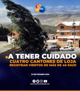 CUATRO CANTONES DE LA PROVINCIA DE LOJA, ADECTADOS POR FUERTES VIENTOS DE HASTA 40km/h