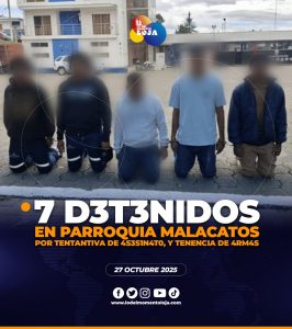 😱🚨🚔¡Acción oportuna! En la parroquia Malacatos, cantón Loja, personal de Policía Nacional logró la aprehensión de siete sujetos presuntos implicados...