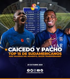 🇪🇨🔝💸¡Entre los mejores! Según la plataforma Transfermarkt, los jugadores ecuatorianos Moisés Caicedo y Willian Pacho, se encuentran entre los 15...
