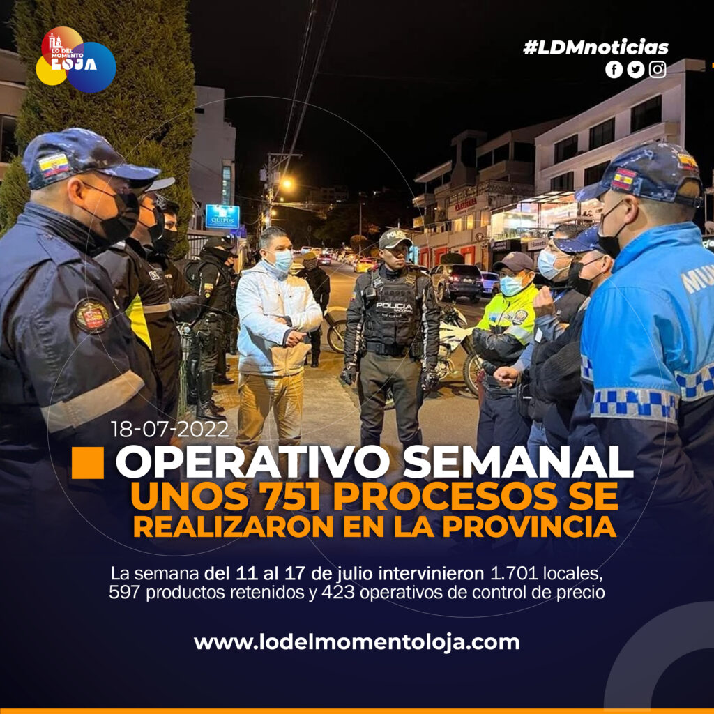 De acuerdo al trabajo ejecutado por Intendencia General de Policía, comisarías, tenencias políticas, en coordinación con Policía Nacional, municipios, entre otros organismos de seguridad, se registra 751 operativos, 1.701 locales intervenidos y 597 productos retenidos en toda la provincia, durante la semana del 11 al 17 de julio de 2022.