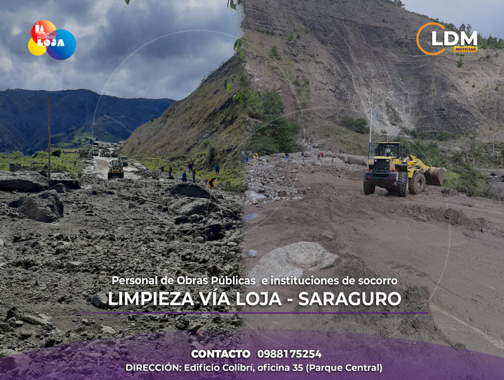 #Loja | Personal de Obras Públicas e instituciones de socorro realizan labores de limpieza en la vía Loja – Saraguro.