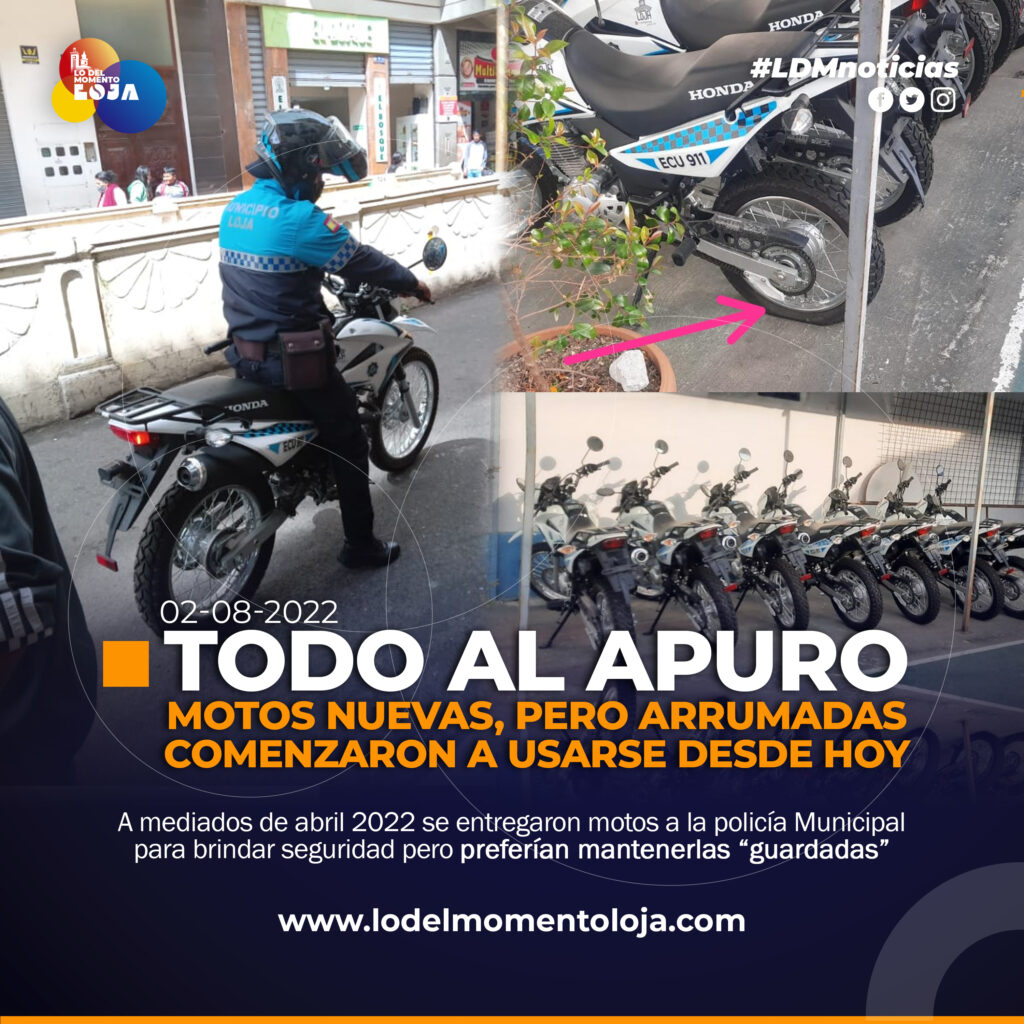 Casi 4 meses después de haber hecho público la entrega de siete motocicletas para el uso de los agentes de control municipal, estas estaba arrumadas, sin placas y hasta con llantas deshinchadas por la falta de mantenimiento, algo que desconoce los motivos para tener guardados los elementos que ayuden a garantizar la seguridad de la ciudad de Loja.
