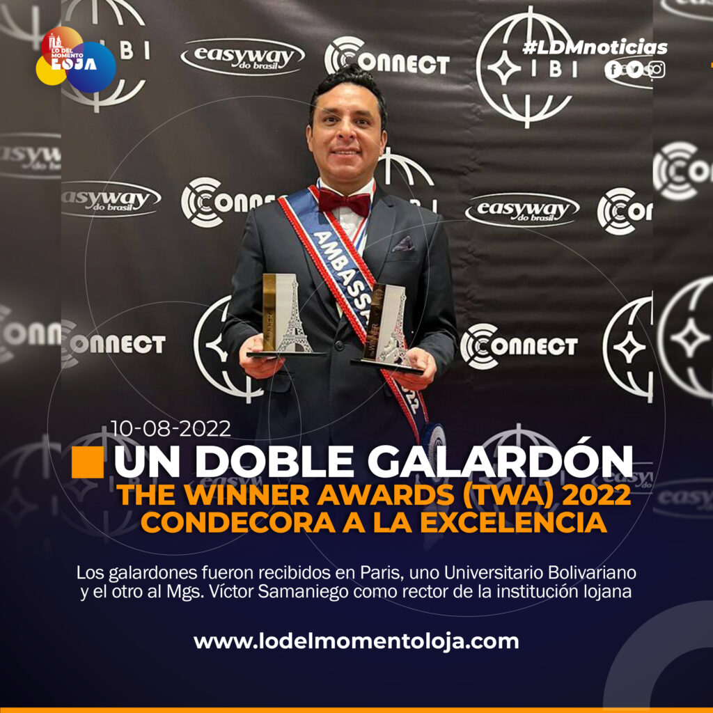 Mencionó su gratitud al equipo multidisciplinario del Bolivariano, recordó el ejemplo de su padre, Víctor Samaniego Castro, fundador del ISUB y reflejó su congratulación a las dos corporaciones organizadoras del TWA, por recibir los premios en París, ciudad cuna de las transformaciones de la humanidad.