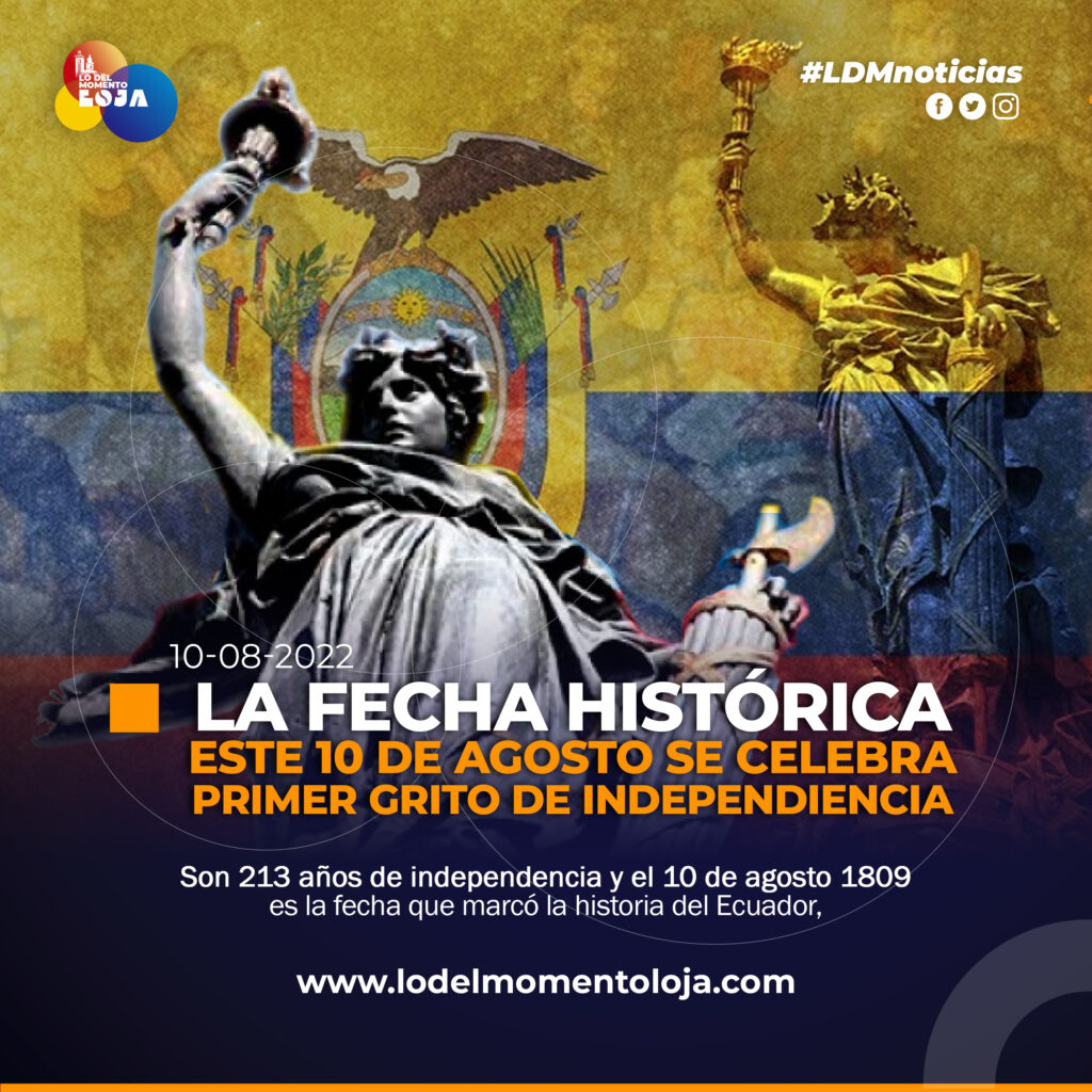 Hoy miércoles 10 de agosto del 2022 se cumple 213 años desde que el Ecuador paso a ser un país libre, soberano e independiente, esto se consiguió con el “Primer Grito de Independencia” que marcaría a Quito como la “Luz de América” por ser según algunos historiadores el primer levantamiento independentista.