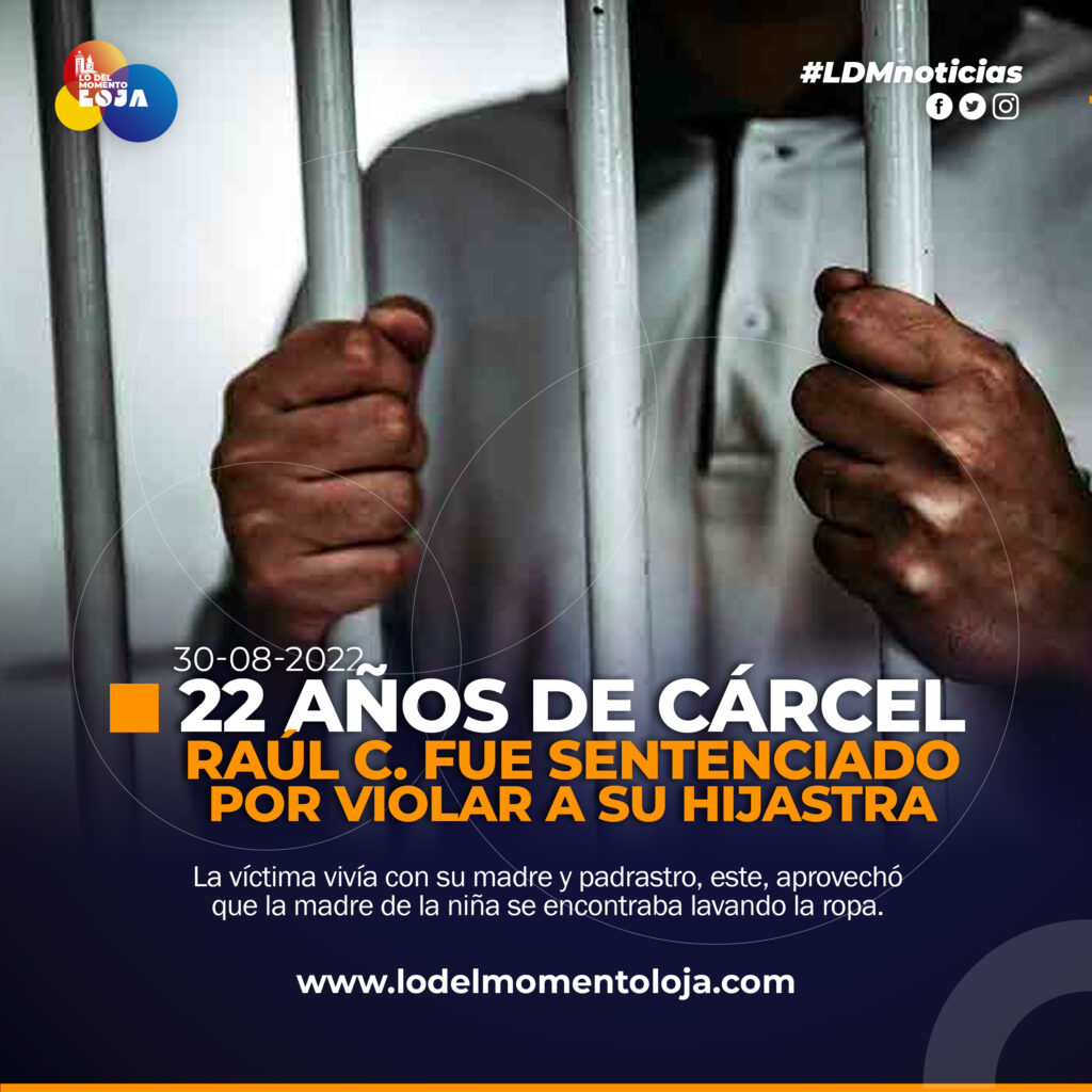 Arenillas (El Oro), 30 de agosto de 2022.- A veintidós años de pena privativa de libertad fue sentenciado Raúl C., como autor directo de la violación de su hijastra de 11 años.
