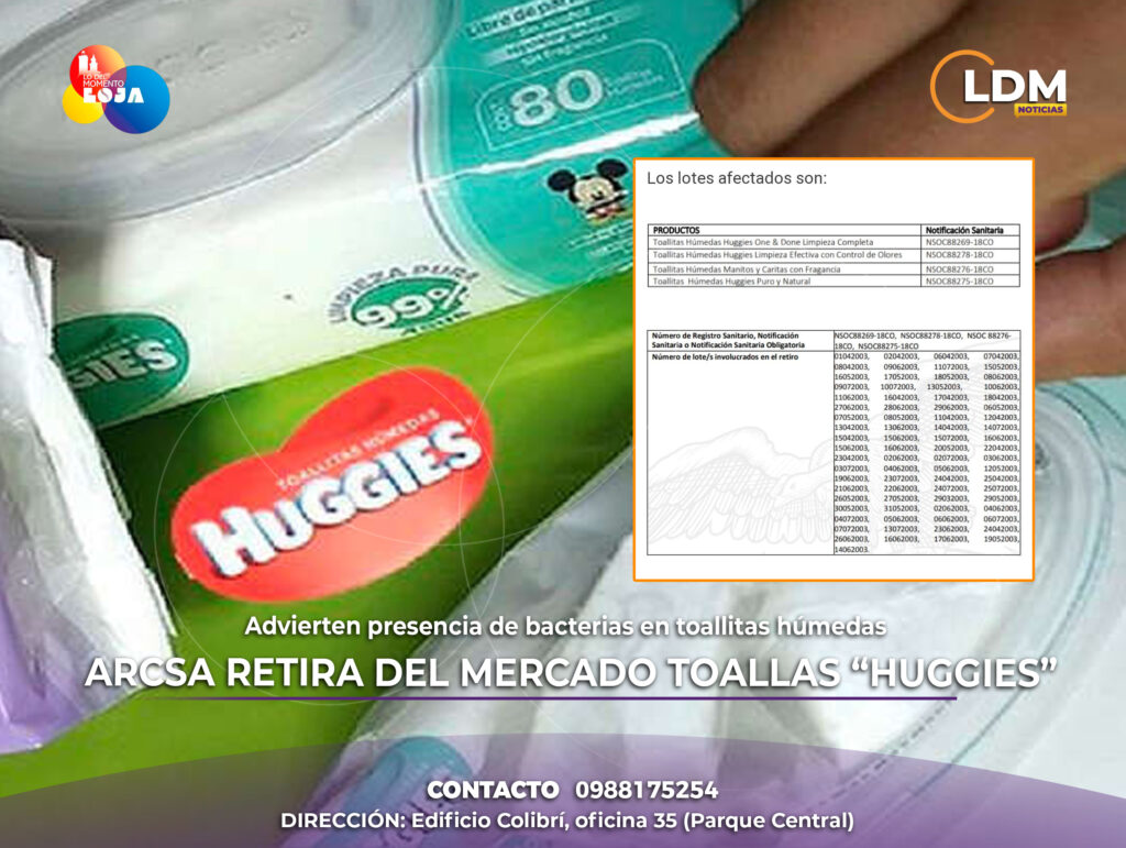 La institución de vigilancia sanitaria informó que, Kimberly-Clark Ecuador S.A. retiró del mercado de lotes específicos de toallitas húmedas de marca HUGGIES®, por la presencia de microorganismo Pluralibacter gergoviae (Enterobacter Gergoviae), un contaminante ambiental de tipo patógeno oportunista.