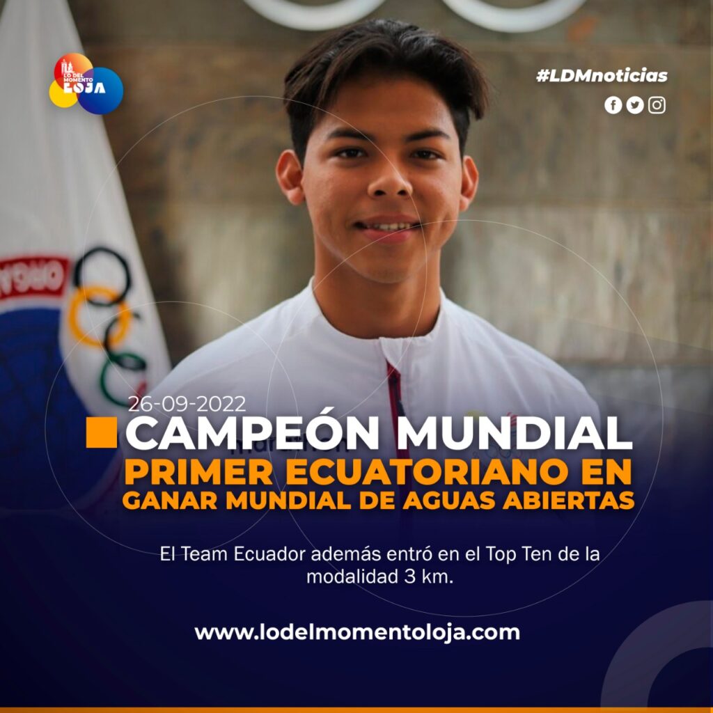 #Internacional | El nadador Jeremy Menoscal se consagra como el primer ecuatoriano en la historia en ser campeón del Mundo en el Campeonato Mundial de Aguas Abiertas modalidad con aletas 150 m en Viverone, Italia el pasado 16 de septiembre de 2022.