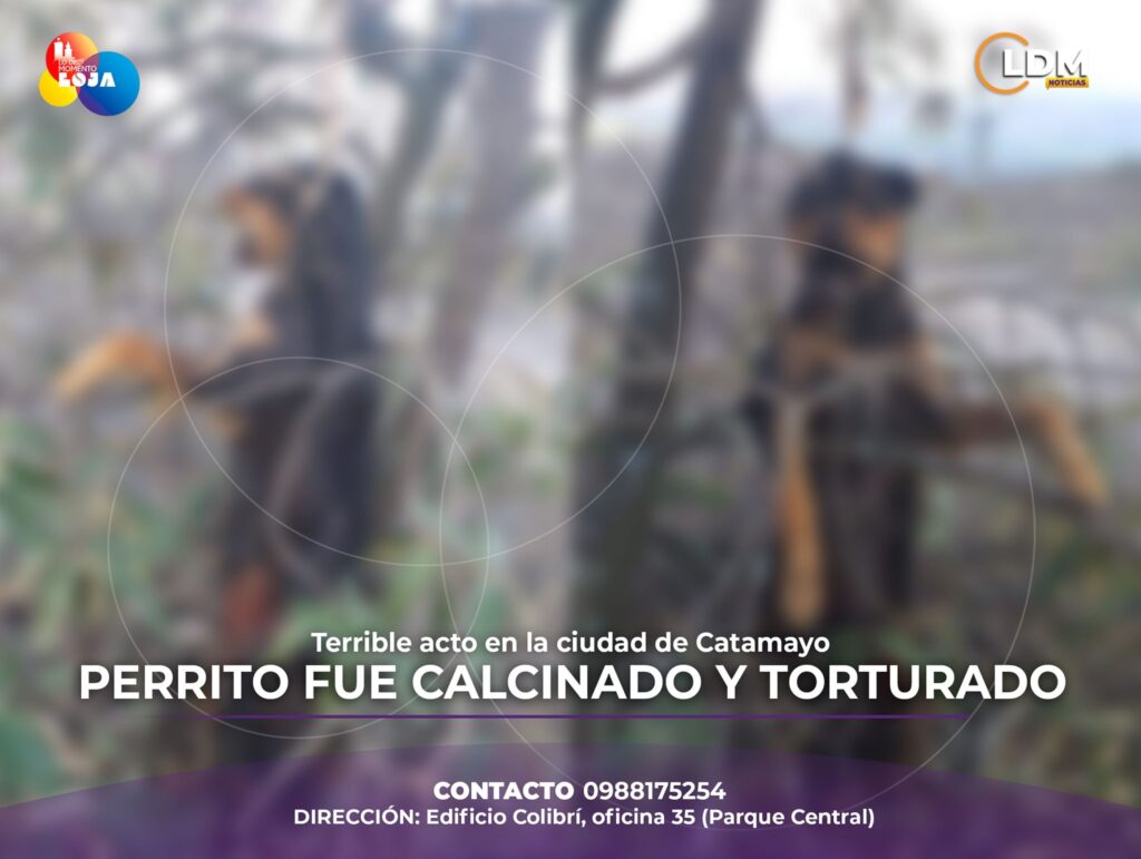 La Fundación Salvando Huellitas Catamayo, denuncia a través de sus redes sociales la crueldad del ser humano. Las fuertes imágenes publicadas se evidencia la tortura del perrito que fue calcinado y luego colgado según expresa la página, a quienes les llegó las imágenes por medio de un usuario que denunció. Las imagines habrían sido tomadas en el sector Vallesteros perteneciente al cantón Catamayo.