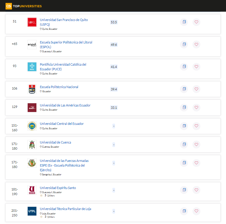 La publicación anual QS World University Ranking Latin America reveló el jueves 22 de septiembre, el listado de las mejores universidades de la región. En esta duodécima clasificación mundial constan 22 instituciones ecuatorianas, entre ellas destaca la Universidad Técnica Particular de Loja (UTPL), que se ubica dentro del top 10 de las mejor calificadas del país.