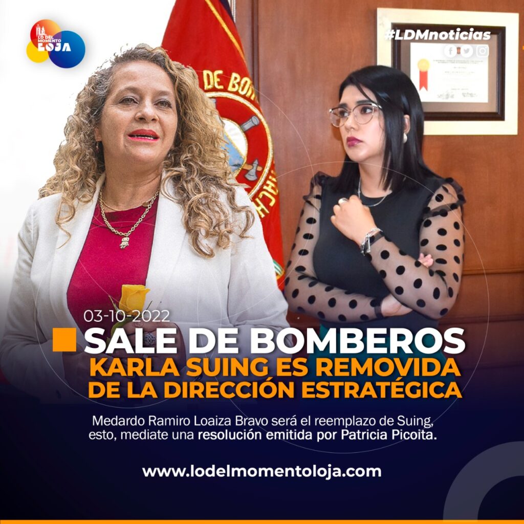 #Loja | Con fecha 3 de octubre del 2022, mediante resolución municipal No 0098-AL-2022 se ha dado por terminado el encargo de la Abg. Karla Gabriela Suing como Director Estratégico del Cuerpo de Bomberos de Loja para darle paso a Medardo Ramiro Loaiza Bravo, esto ante varias polémicas que se han generado en los últimos días en la institución bomberil.