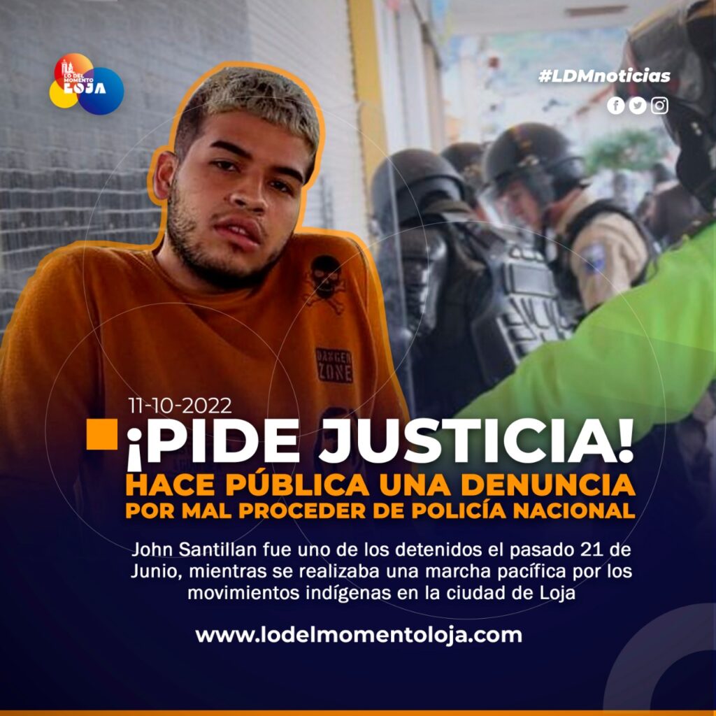 #Loja | Hacen pública una denuncia, donde dejan entre ver que hubo un mal proceder por parte de la policía nacional, pues el pasado, 21 de junio, se realizó una marcha pacífica por los movimientos indígenas en la ciudad de Loja, pero en horas de la tarde se notificó que hubo algunos detenidos, pues uno de ellos fue John Santillán.