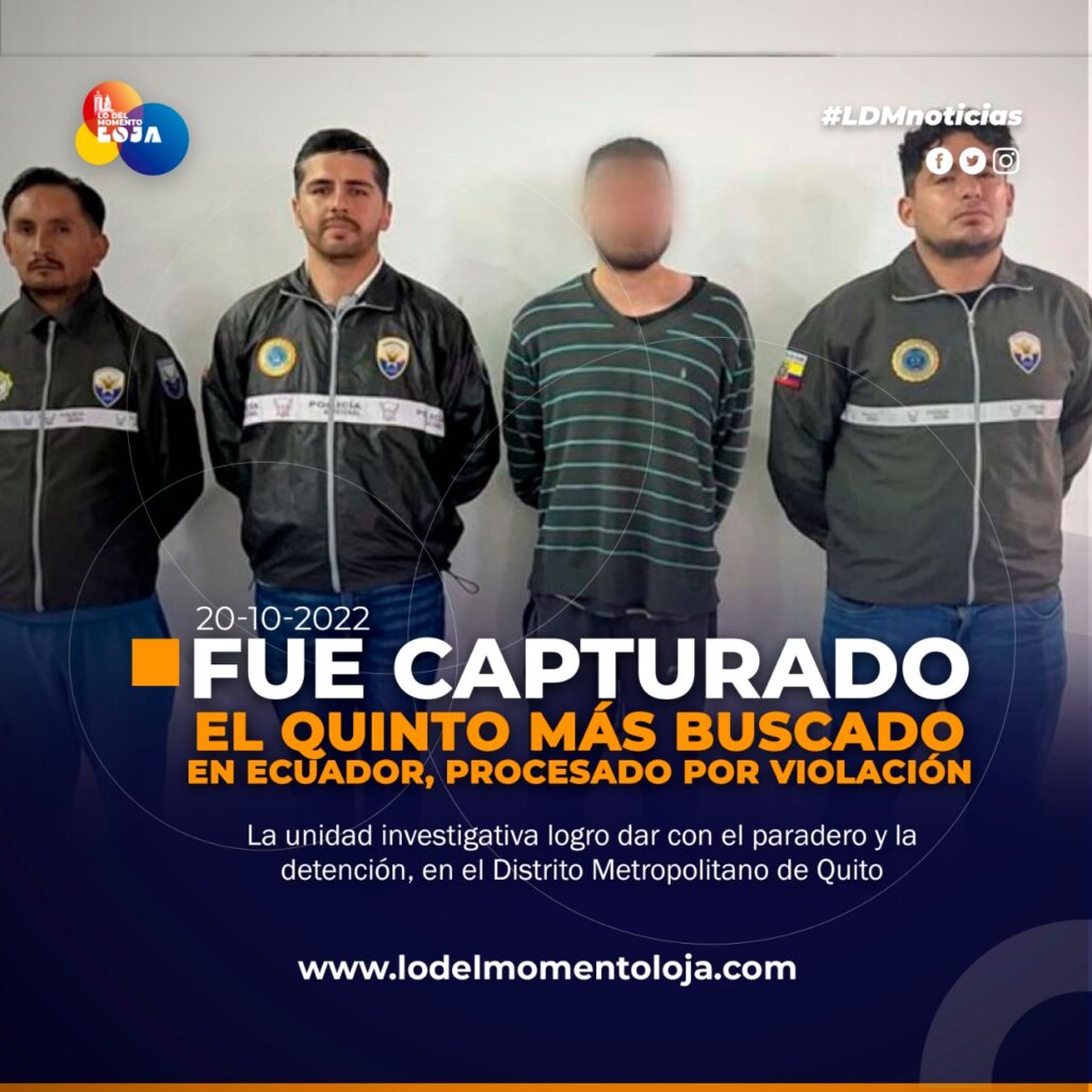 #Ecuador | La Policía Nacional informó de la captura del quinto más buscado de Ecuador este jueves, 20 de octubre de 2022.