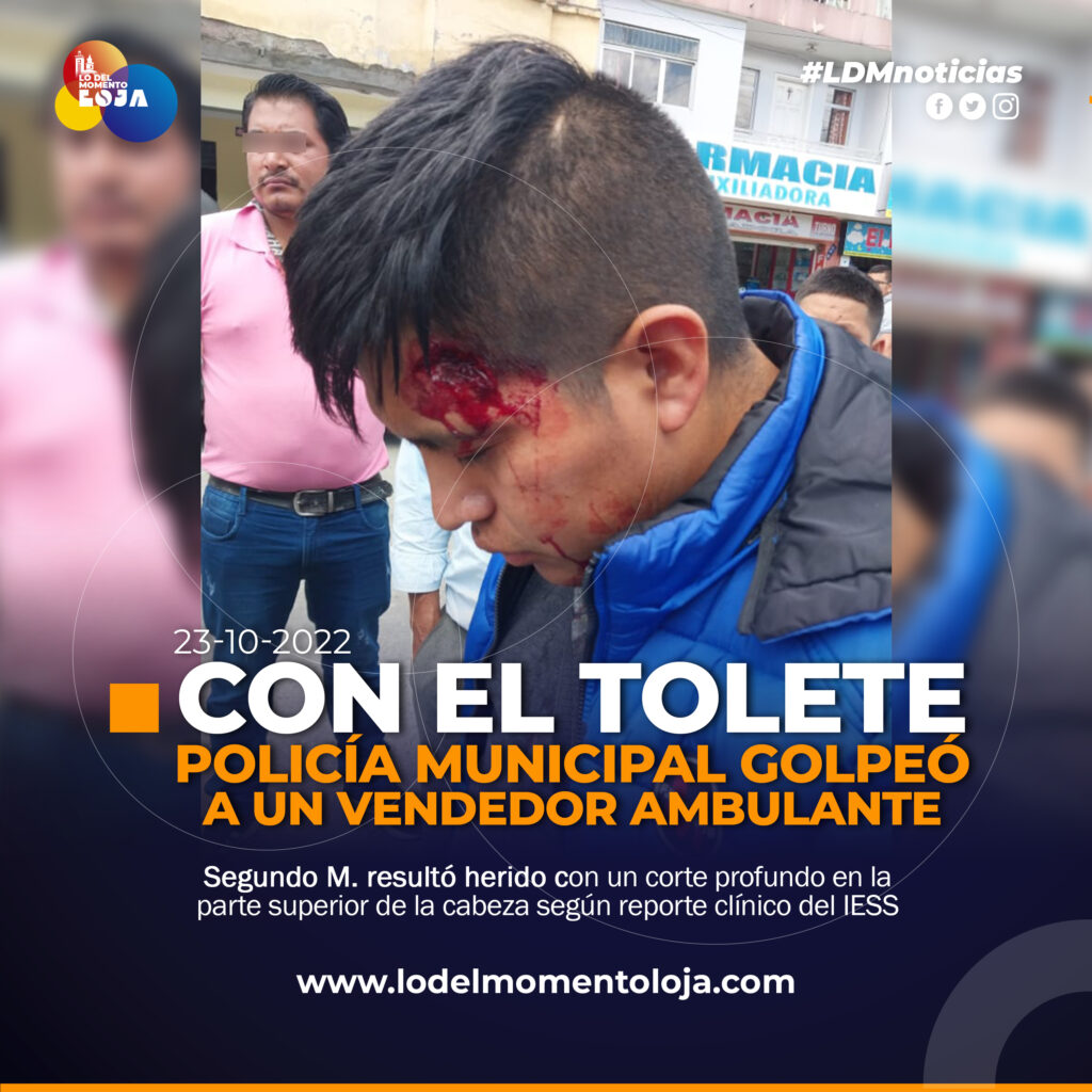 #Loja | Entre las 12h00 del medio día de hoy, en el mercado Mayorista del cantón Loja se ha registrado una agresión física de un policía municipal contra un ciudadano de 31 años que responde al nombre de Segundo Franklin M. R. que se dedica a la venta ambulante; esto, por un impacto de tolete, causándole una herida cortante de aproximadamente 5 centímetro en la parte frontal del cráneo según el reporte del IESS.