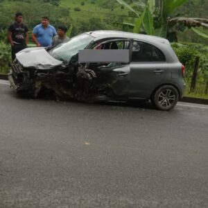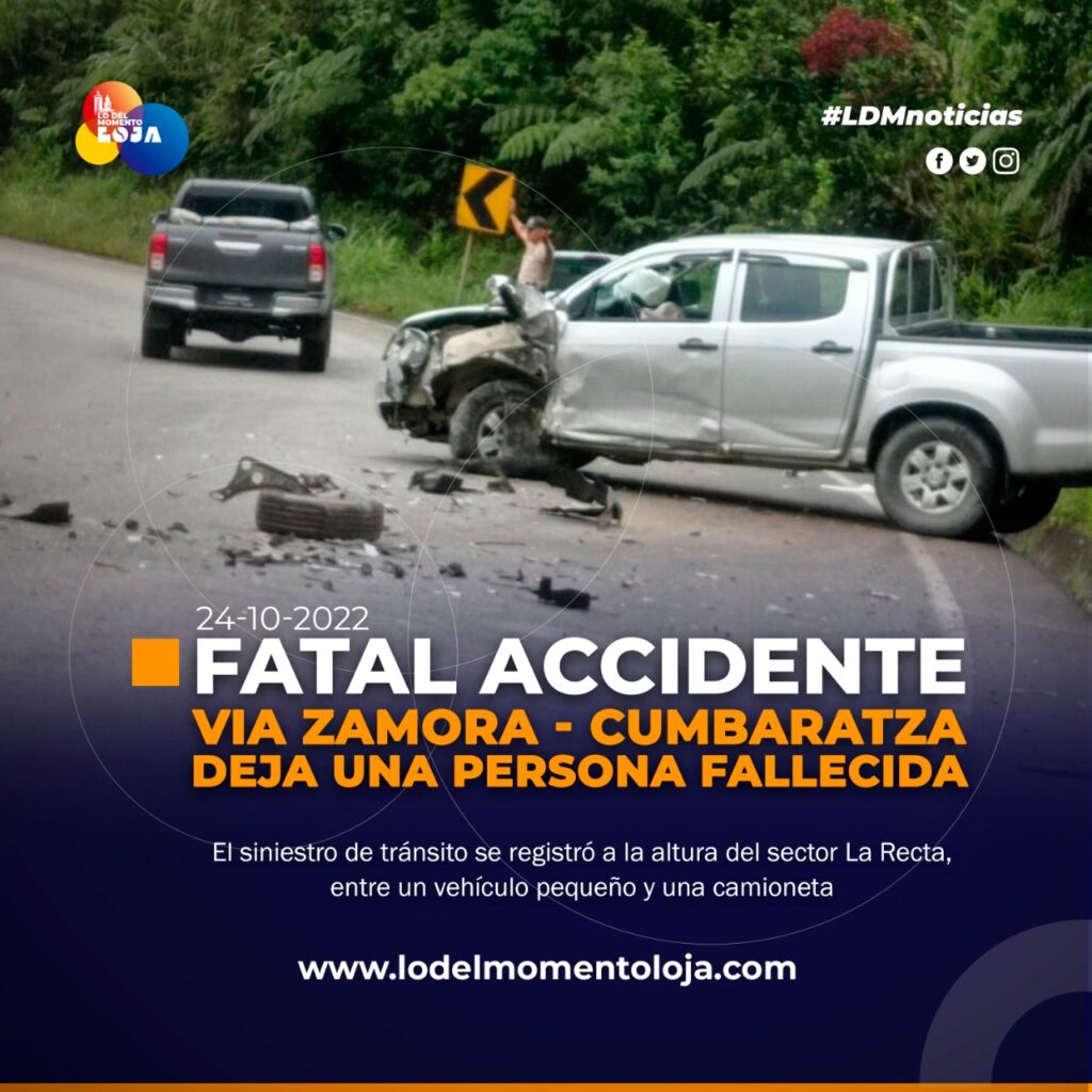 #ZamoraChinchipe | El impacto entre un auto y una camioneta, deja como saldo varios daños materiales y una persona fallecida, a la altura del sector La Recta, en la vía que conecta Zamora – Cumbaratza, a 500 metros pasando la pista.