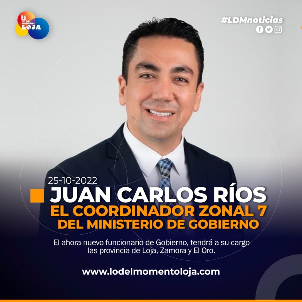 Desde el Ministro de Gobierno, Francisco Jiménez ha designa al Mgtr. Juan Carlos Ríos Espinoza, como Coordinador Zonal 7 de esta cartera de Estado.
