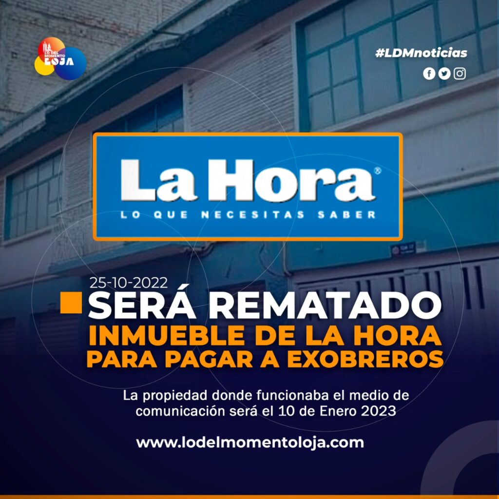 #Loja | El lunes 24 de octubre de 2022, se dio a conocer el remate del inmueble de propiedad de La Hora-Loja, con cuyo producto económico se procederá a indemnizar a los exobreros. La casa, donde funcionaba el medio de comunicación, será rematada el 10 de enero de 2023 y su avalúo es de 390 mil dólares.