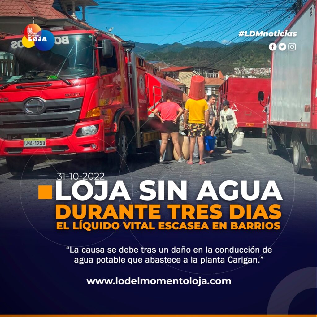A pesar del malestar de la ciudadanía, el municipio de Loja ha informado que este problema, se debe a un daño en la conducción de agua potable que abastece la planta Carigán y con ello han mencionado que los tanqueros, son quienes abastecerán del líquido, en los sectores afectados, que no tienen agua para las diferentes actividades, ni para el consumo humano.