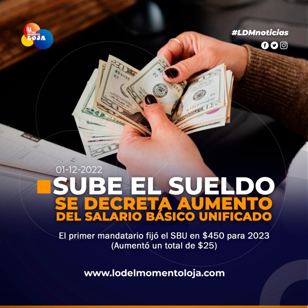 A partir del 1 de enero de 2023, el salario básico unificado (SBU) subirá a $ 450 (aumento de $25). Así consta en el Decreto Ejecutivo 611, con fecha 30 de noviembre y suscrito por el presidente de la República, Guillermo Lasso.
