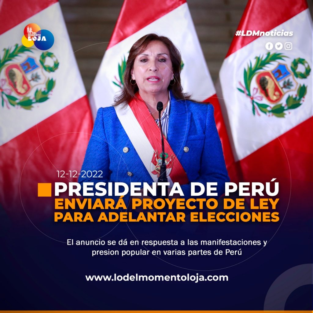 📈👍🇵🇪 ¡Busca adelantar elecciones! La presidenta de Perú, Dina Boluarte anunció en la madrugada de este lunes que enviará al Congreso un proyecto de ley para adelantar las elecciones generales a abril de 2024, en respuesta a la presión popular que exigía el adelantamientos de los comicios y el cierre del Congreso.