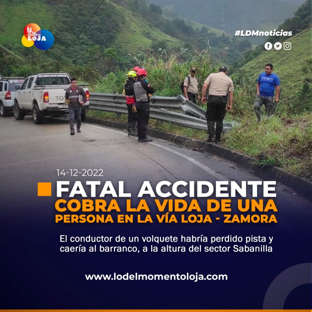 🛻💥⛰️ ¡Accidente deja un fallecido! La mañana de este 14 de Diciembre, se registró un accidente de tránsito en la vía Loja – Zamora, a la altura del sector Sabanilla (El Tambo), en el que un ciudadano perdió la vida.