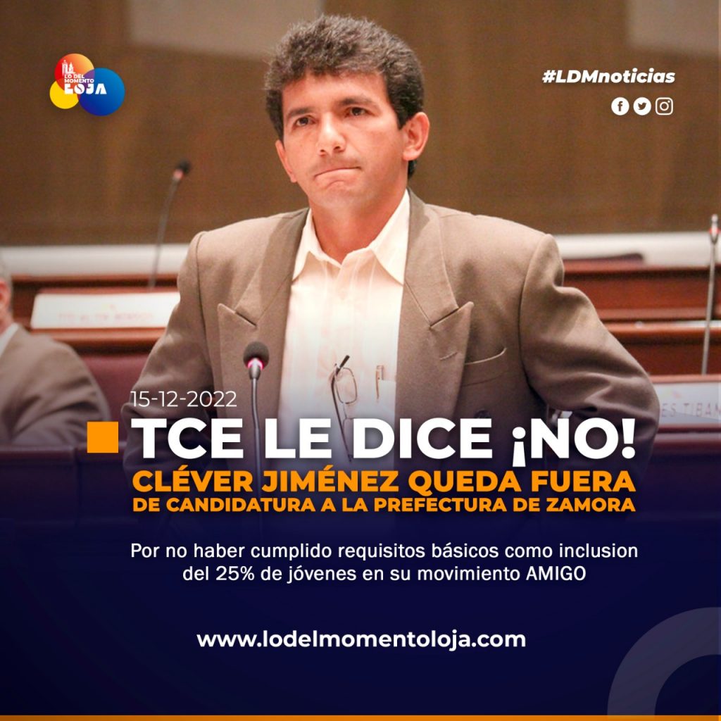 👀👉🏼🚪 ¡Petición negada! El TCE tras ratificar el incumplimiento de requisitos básicos como la inclusión del 25% de jóvenes dentro del Movimiento AMIGO 16, negó a Cléver Jiménez la candidatura a la prefectura de Zamora Chinchipe.